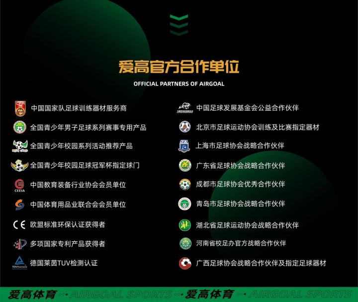 爱高体育成立于2005年,是中国最为知名的专业足球器材供应商,中国国家队足球器材服务商,产品畅销全球50个国家,风靡欧美、日韩等足球强国,连续十年销量领先业界。现如今爱高体育受到超八成中超球队,以及8000所足球特色学校及幼儿园、多个校园足球试验区、试点县以及“满天星”训练营的青睐和选用。2017年爱高体育正式联手中国之队,成为中国国家队官方器材支持品牌,长期支持于中国男足、中国女足、国青队、国奥队等全年龄段国字号球队训练与备战,为中国足球事业发展做出杰出贡献。