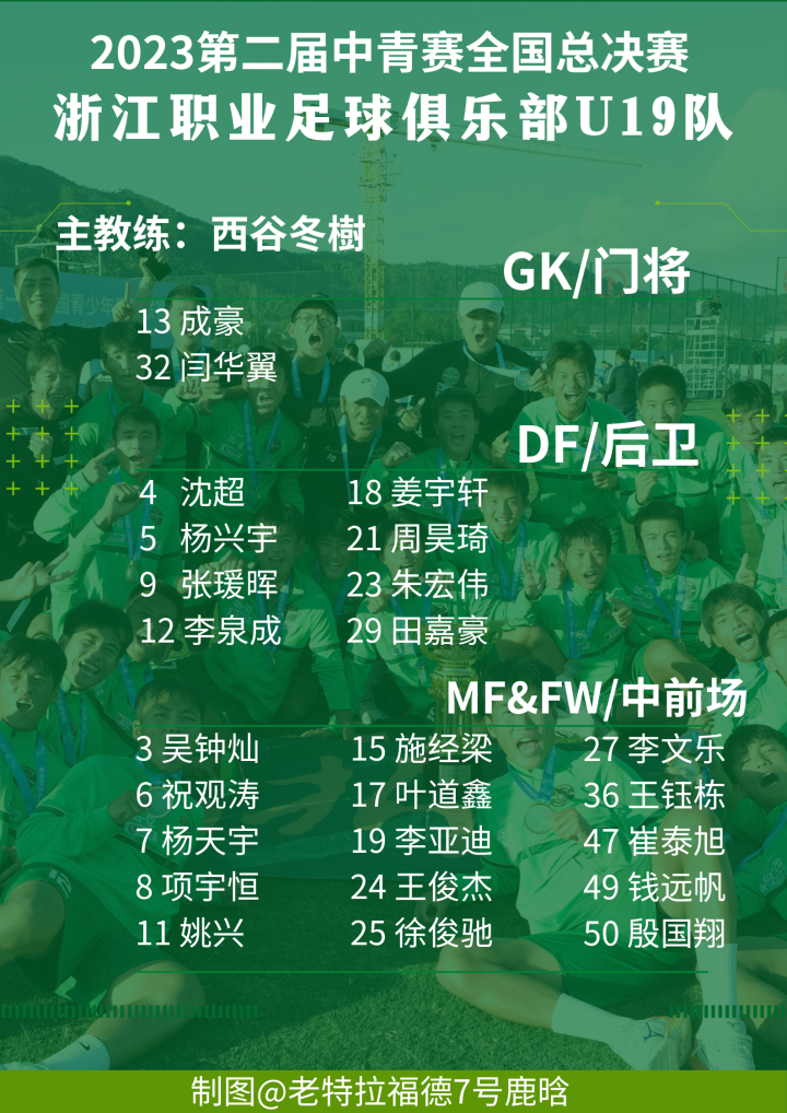 (浙能绿城U19第四阶段大名单 制图:老特拉福德7号鹿晗)