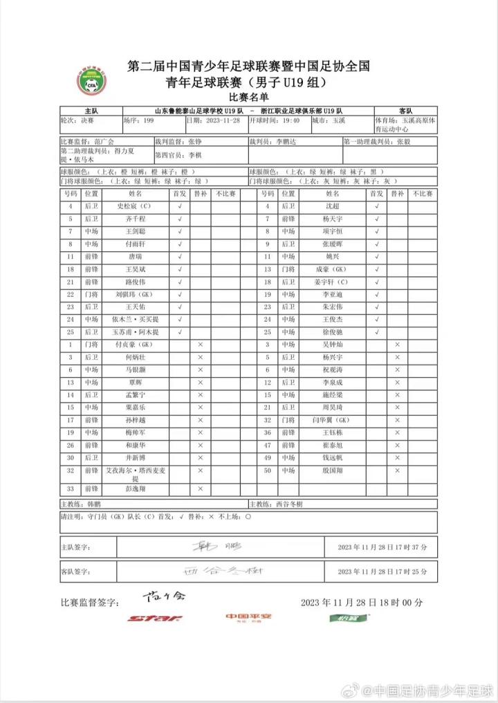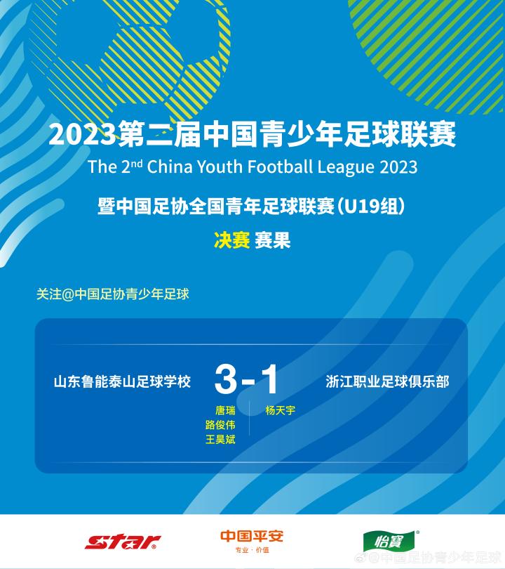 “浙江U19队1-3不敌山东鲁能泰山足球学校U19队,遗憾夺得本次赛事的亚军,杨天宇为球队打入唯一进球。前两回合,双方各自收获一场胜利。遗憾的是,决赛的失利让球队与冠军失之交臂。至此,浙江U19队结束了本届中青赛之旅,感谢来到今晚决赛现场的球迷朋友,也感谢大家对浙能绿城青年军一整年的关注。调整、总结,向着下一个赛场。” @浙江FC微博