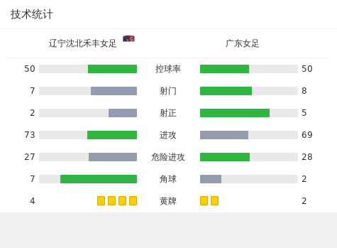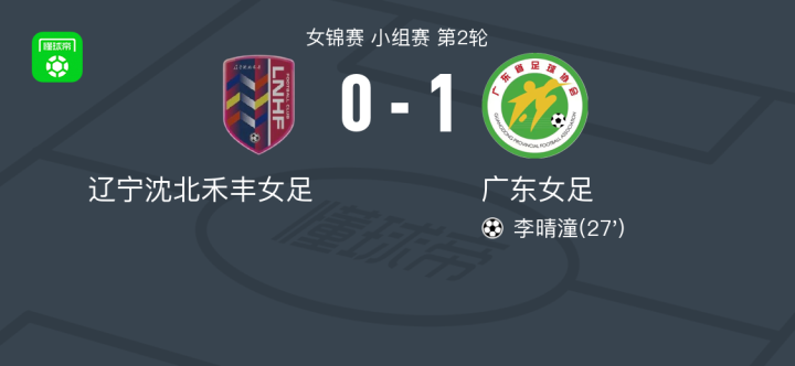 北京时间2月2日女锦赛 小组赛 第2轮,辽宁沈北禾丰女足主场对阵广东女足。辽宁沈北禾丰女足。广东女足李晴潼破门。最终比分0-1。