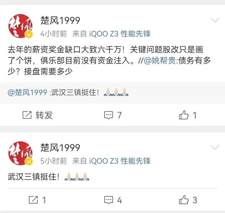 三镇要解散?博主:武汉足球即将走向历史最低谷,一切归零ZeroTsu_02 @懂球帝2024-02-02 17:39博主楚风1999消息,武汉三镇去年薪资缺口大致为6000万,而博主武汉足球情报小组表示,武汉足球即将走向最低谷,一切归零。该博主写道:“武汉足球即将走向历史最低谷,一切归零。”目前三级职业联赛中只有武汉三镇一支武汉球队,此前通过清欠又被举报的中乙武汉江城队最终无缘准入名单。此外据博主楚风1999表示,武汉三镇队去年薪资和奖金缺口大致为6000万,关键股改只是画了个饼,俱乐部目前没有自己注入。展开更多