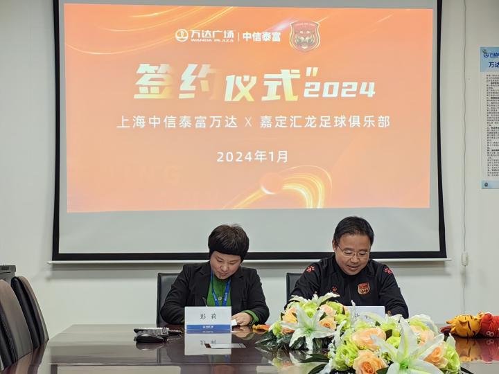 1月30日,上海嘉定汇龙足球俱乐部与上海嘉定新城万达广场商业管理有限公司签署商业合作协议,双方将携手合作,扎根嘉定,为广大嘉定球迷带来丰富的高品质生活体验。