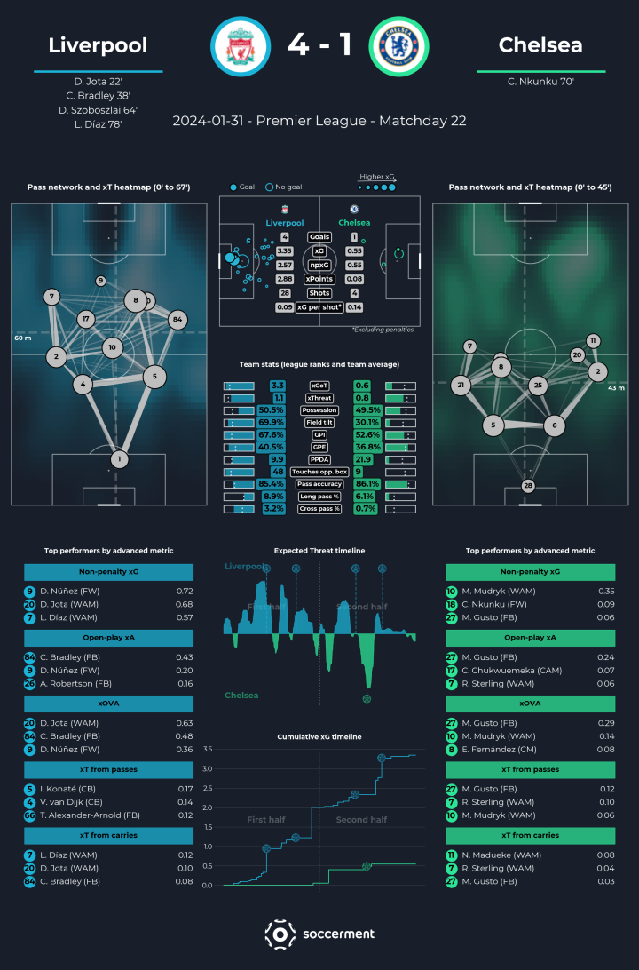 本次展示的是1月31日晚和2月1日晚结束的英超第22轮场次赛后报告。