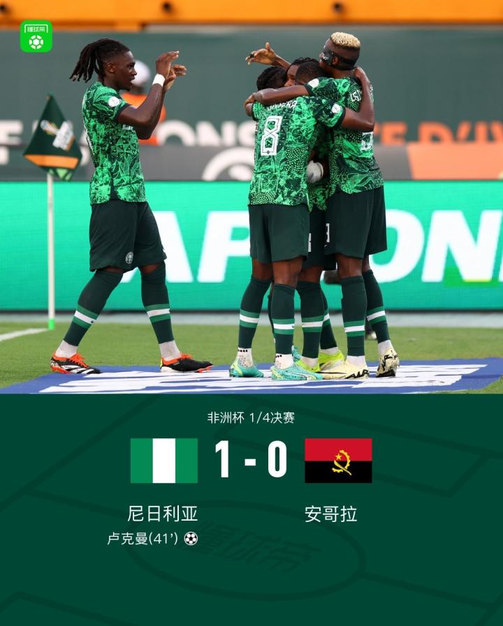 尼日利亚1-0安哥拉晋级非洲杯四强,西蒙助攻卢克曼一锤定音
