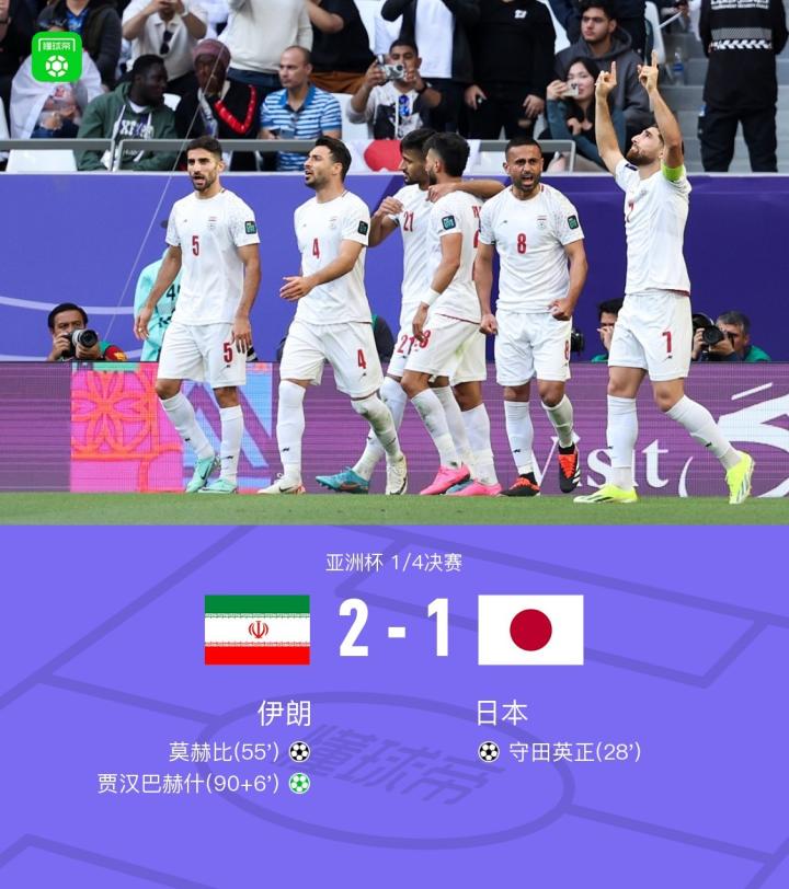 伊朗2-1逆转日本晋级四强,贾汉巴赫什补时点杀,板仓滉送点