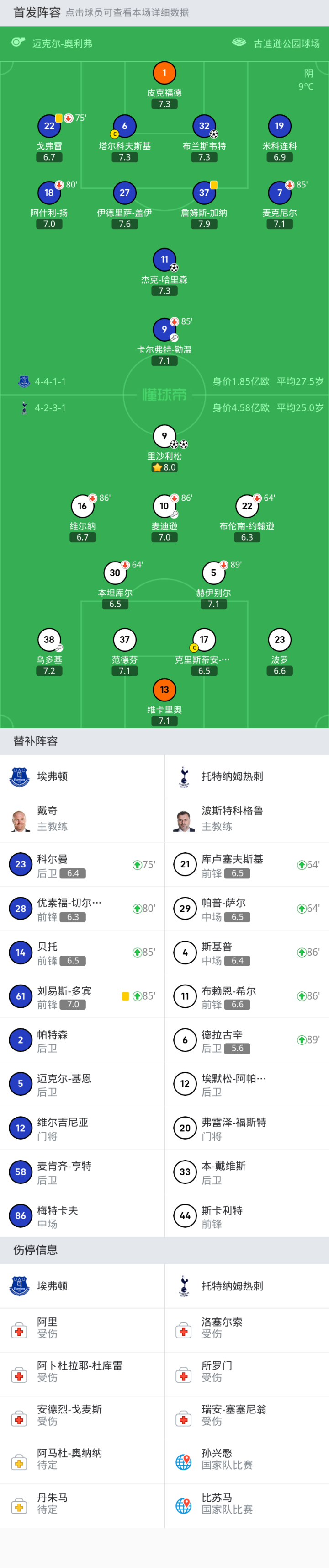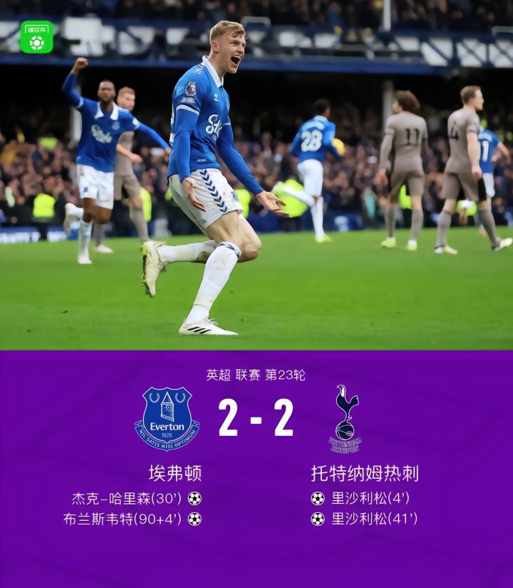 剑南春|埃弗顿2-2热刺,里沙利松梅开二度,罗梅罗乌龙助攻