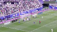 第86分钟,日本队守门员铃木彩艳出击倒地将球从阿兹蒙脚下扑出,阿兹蒙倒地后投诉铃木彩艳犯规,马宁则没有表示,比赛继续进行。通过回放可以看到,铃木彩艳确实是先用手将球击出,随后才与阿兹蒙发生了身体接触,马宁的选位依然非常完美,就站在正后方,没有任何视线阻碍,能够清晰地看到此次罚球区事件的全过程,并做出了正确的判断。