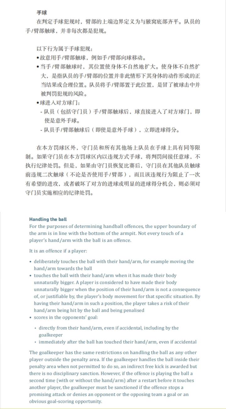 (图)2023/24版IFAB《足球竞赛规则》——手球