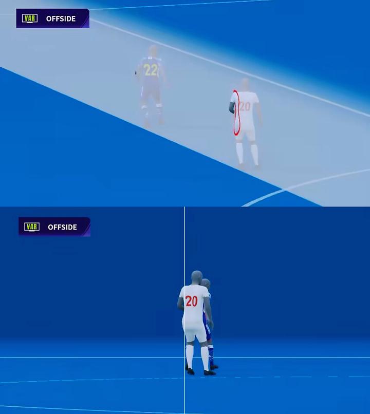 本届亚洲杯使用了半自动越位系统,如有越位犯规情况出现,该系统将直接提醒视频比赛官员。从半自动越位系统生成的图像可以看出,在队友触球瞬间,阿兹蒙的肩部和臀部有一小部分处在越位位置,第二助理裁判员比彻姆对这次越位情形的判断非常精准。