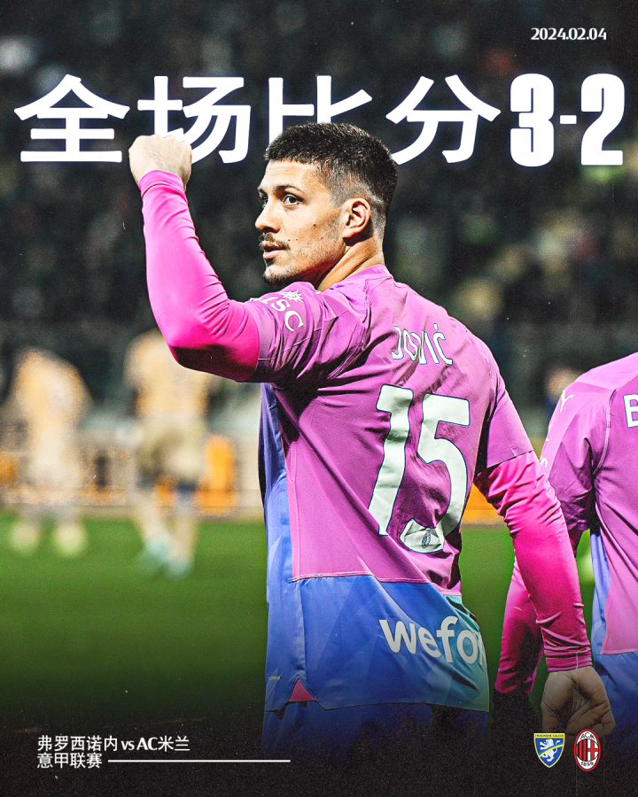 全场比赛结束,凭借吉鲁、加比亚和约维奇的进球,最...AC米兰足球俱乐部 @懂球帝2024-02-04 03:06全场比赛结束,凭借吉鲁、加比亚和约维奇的进球,最终我们在客场3-2战胜弗罗西诺内。展开更多