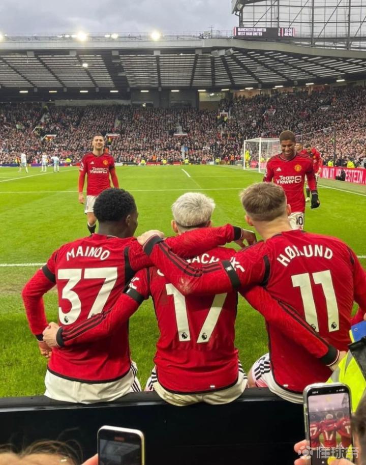 在赛后发布会上,当记者提到梅努、加纳乔和霍伊伦这张庆祝进球的合照,滕哈格表示:“曼联的未来非常美好,因为我们潜力很强。”