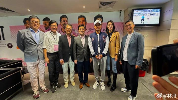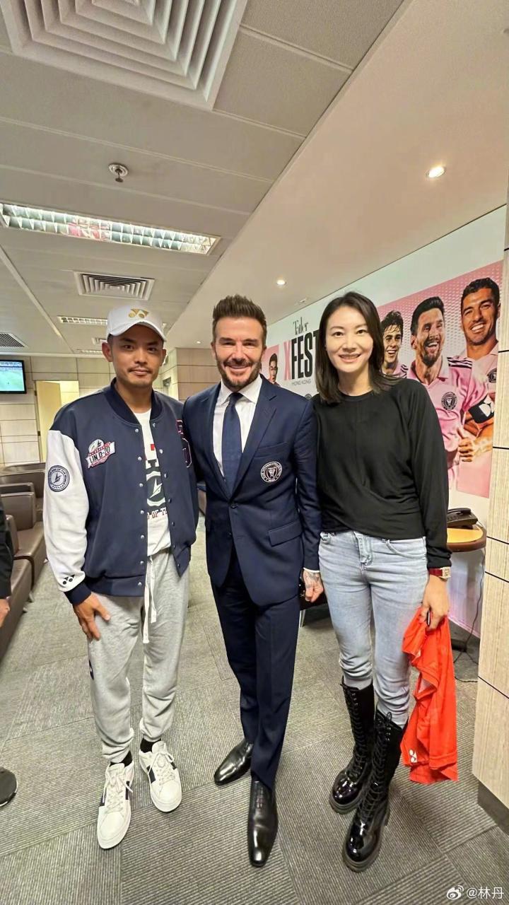 在迈阿密国际香港行比赛结束后,羽毛球运动员林丹晒出与贝克汉姆等人的合照并调侃道,带娃比比赛累。