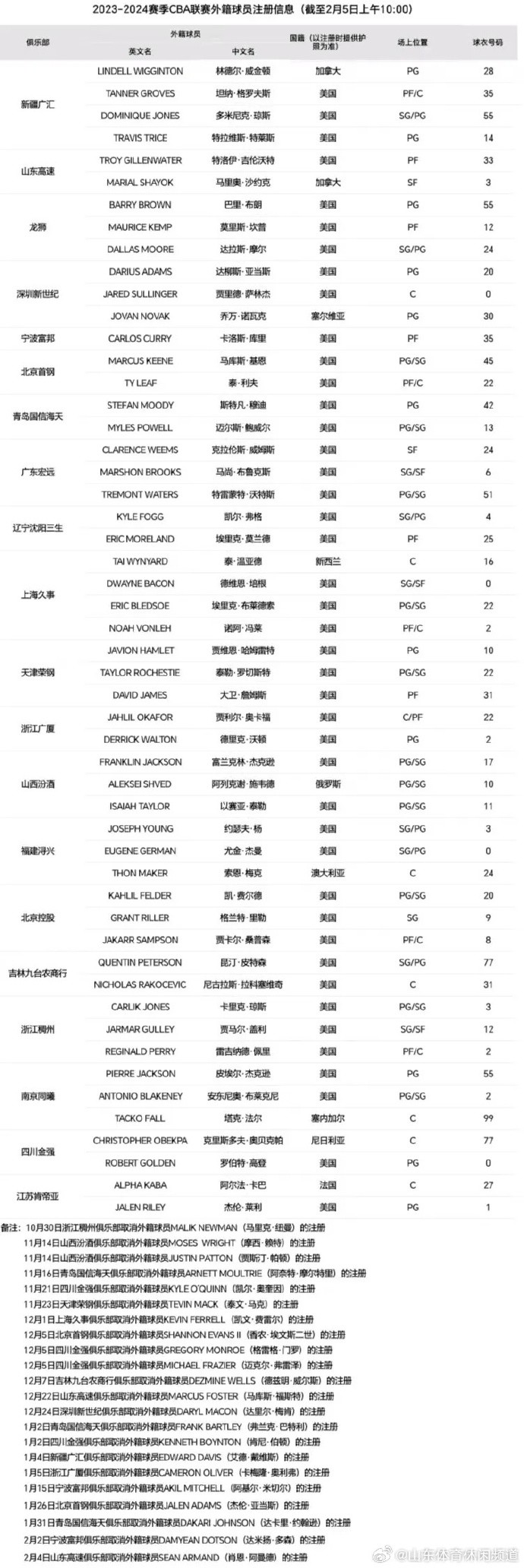 CBA官方:山东高速男篮取消外援肖恩-阿曼德的注册Xiao-Cheng @懂球帝2024-02-05 16:27北京时间2月5日,CBA官方发布公告:官网更新了外籍球员注册信息,山东高速男篮取消外援肖恩-阿曼德的注册。肖恩-阿曼德仅为山东高速男篮出战7场比赛,场均上场11.6分钟,场均8分、0.9篮板和2.1助攻展开更多