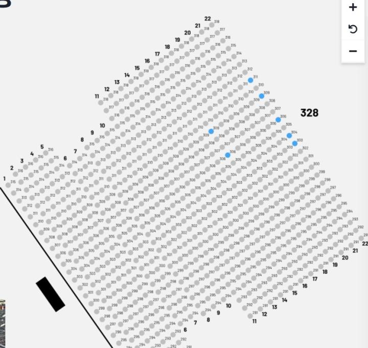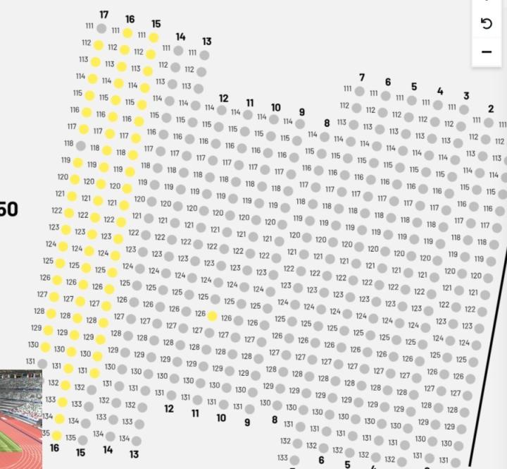 图为票价12000日元(约582人民币)的250看台,黄色部分为未售出座位