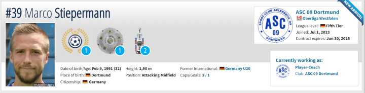 2023年,加盟ASC09多特蒙德,担任球员加教练。