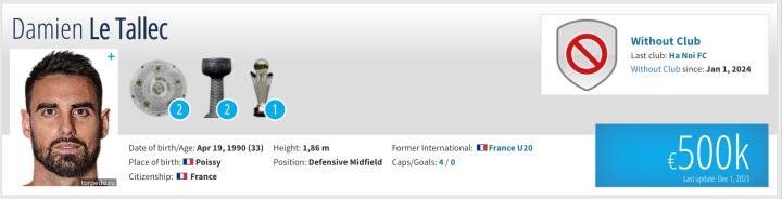 2023年,曾收到中超球队邀请,但选择加盟了越南的河内俱乐部。