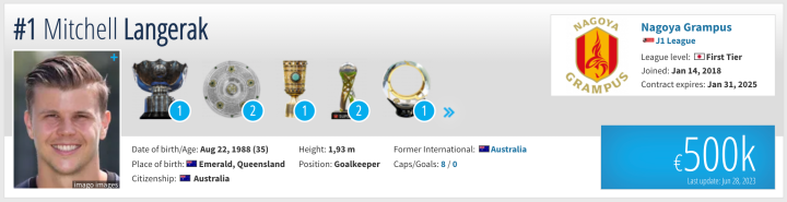 如今,他在日职联的名古屋鲸鱼踢球。从2018年起效力至今。
