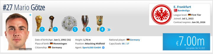 这位就不多做介绍了。他为德国队做出的贡献不可磨灭,阻击了梅球王的第一次冠军梦。在此后,光速坠落。即使在他回归多特后,很多大黄蜂球迷仍然不愿意原谅他。