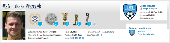 他在2021年离开多特,回到家乡球队,波兰联赛第4级别的戈恰乌科维采。