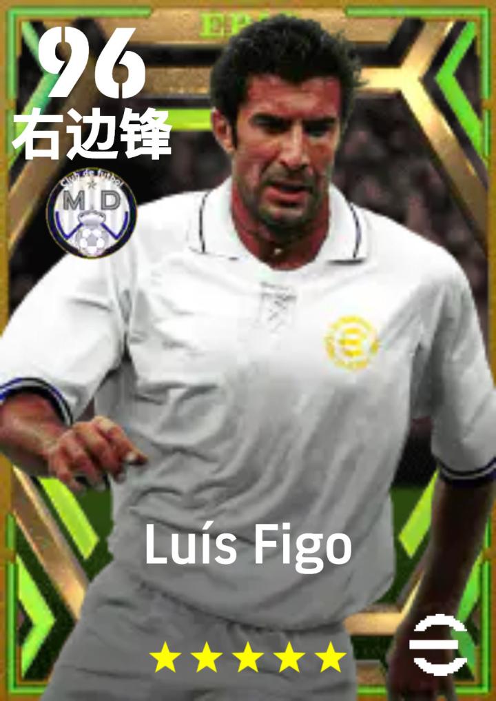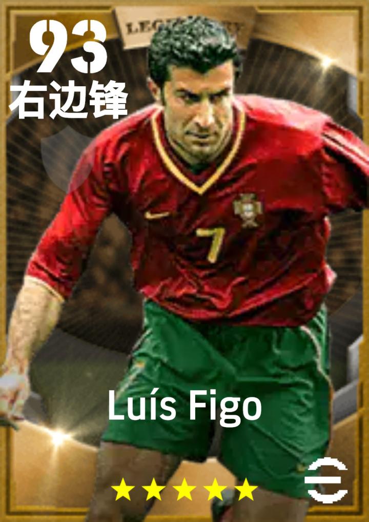 路易斯·菲戈 2000年的欧洲杯,菲戈带领葡萄牙队打进了半决赛。他的表现非常出色,尤其是在对阵英格兰队的比赛中,他打进了一个漂亮的进球。 菲戈的球风优雅且充满创造力,他能够在狭小的空间内轻松突破对手的防线。他的传球精准且富有想象力,常常为队友创造出绝佳的进攻机会。 菲戈在实况足球中,妥妥的右路锋霸,实况中右路球员不算多,最优秀的就属右路天尊菲戈。 尽管数据上不算很好看,但是独特的建模,让他在弓背带球时速度很快。