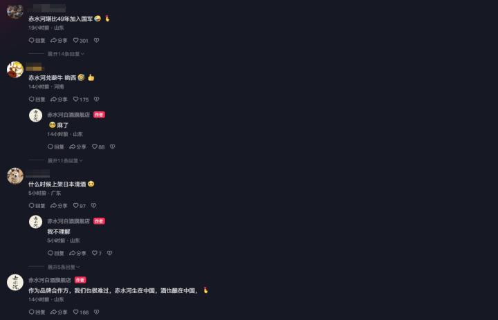 对此,赤水河白酒官方也在评论区回复道:“作为品牌合作方,我们也很难过,赤水河生在中国,酒也酿在中国。”