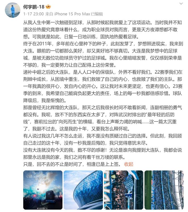 “我们真的有机会赢,可惜……”最终,大连人不敌海港,输掉了最后一战,从中超降级。何宇鹏在自己个人社媒上发文,满是遗憾。
