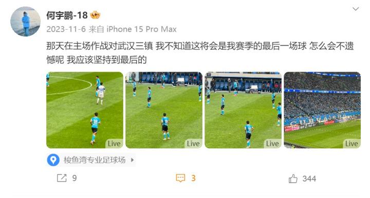 他本想和兄弟们一起战斗到最后,保住“足球城”的荣耀,但最后一场战役,何宇鹏未能上阵杀敌,这成了他职业生涯至今为止最大的遗憾。