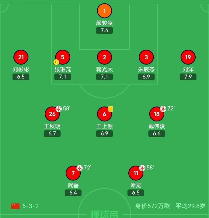 (中国vs塔吉克斯坦的首发阵容,首发11人的平均年龄已经高达29.8岁)
