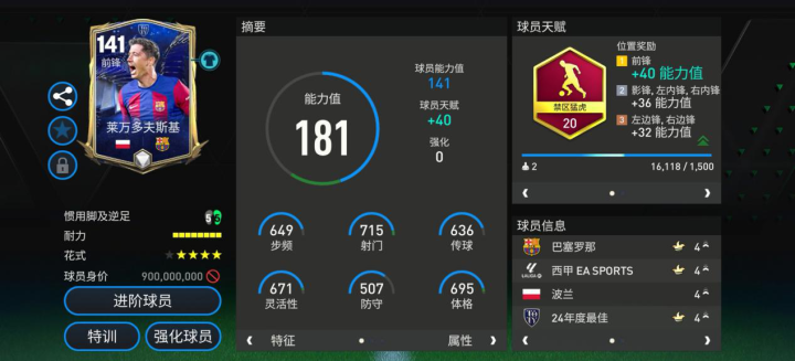 莱万此次给到了禁区猛虎天赋,提高了他的抢点与射门力量,他的射术会更加精湛,这也更加还原了莱万在现实世界中的技术特点,玩家们的游戏体验感与沉浸感会更强。