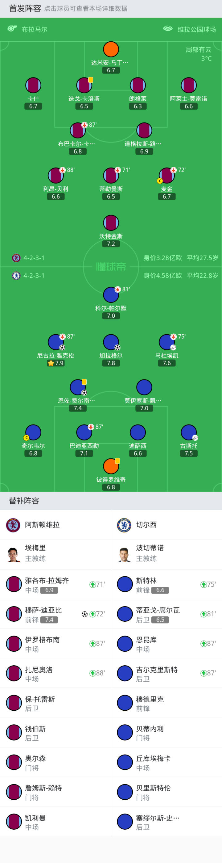 替换下场:87'5-巴迪亚西勒, 81'20-科尔-帕尔默, 75'11-马杜埃凯, 87'15-尼古拉-雅克松