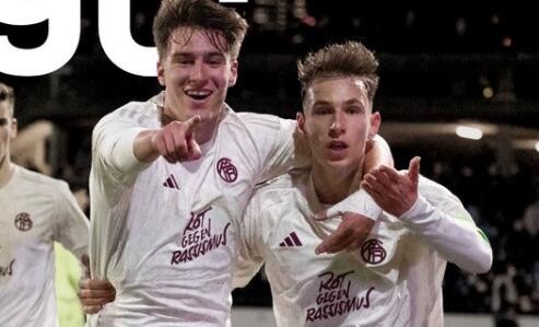 在今天凌晨结束的一场青年欧冠淘汰赛附加赛中,拜仁慕尼黑U19青年队2-0击败巴塞尔U19青年队,拜仁U19顺利进入青年欧冠16强,比赛中拜仁小将兹沃纳雷克梅开二度。
