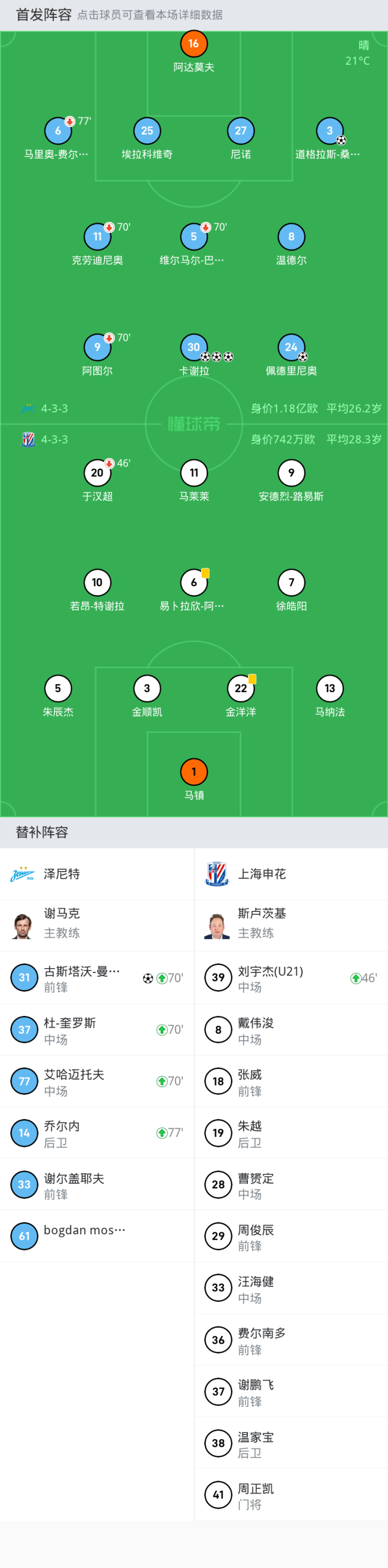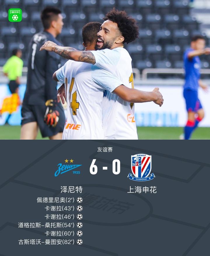 泽尼特6-0横扫上海申花,卡谢拉帽子戏法,曼图安建功