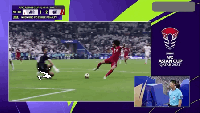 下半场伤停补时第26秒,阿菲夫得球后单刀突入对方罚球区,在带球扣过约旦守门员之后倒地,第一助理裁判员周飞延迟举旗,示意阿菲夫越位,马宁鸣哨判罚其越位犯规。随后VAR介入并建议场边回看,马宁亲自观看回放后改判点球,并向约旦守门员出示黄牌。