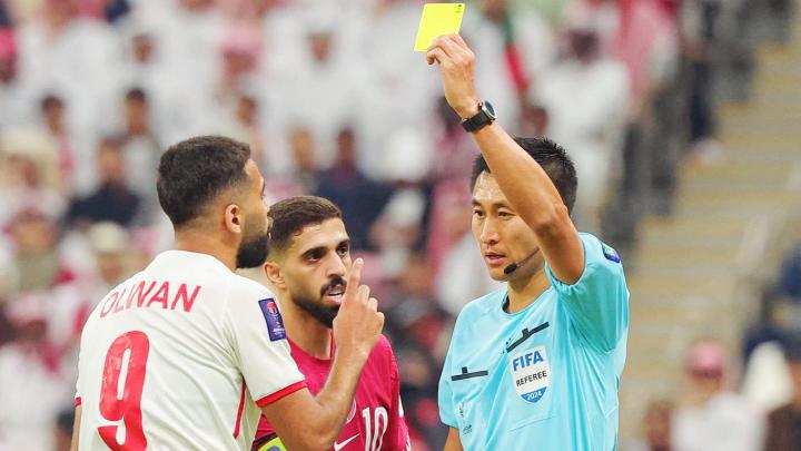 纵观全场比赛,约旦与卡塔尔双方在这场终极决战中的拼抢从开赛起就极为激烈,全场共计29次犯规,其中约旦14次,卡塔尔15次,马宁在上半场因鲁莽犯规黄牌警告了两名约旦队员,下半场向双方各出示了两张黄牌,总计6张黄牌。