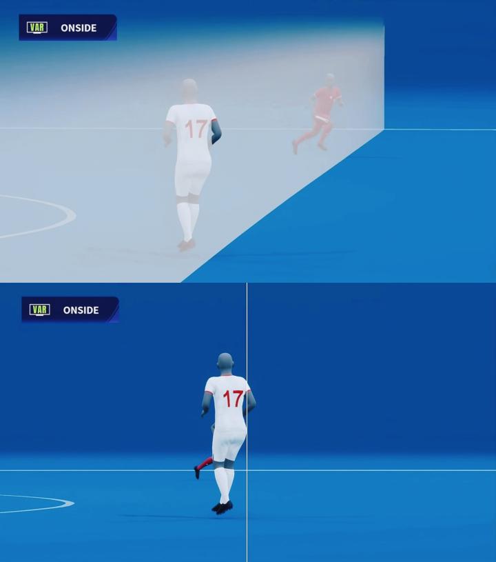 马宁最初的临场判罚是越位犯规,既然VAR因“存在清晰明显的点球漏判”而介入,就说明VAR已经先行核查完毕了最初的越位判罚,并确认阿菲夫不构成越位犯规,只有这样才会进行对于后续这个疑似点球漏判的核查。本届亚洲杯使用了半自动越位系统,根据此系统提供的画面可以看出,在队友头球触球瞬间,阿菲夫并不越位。
