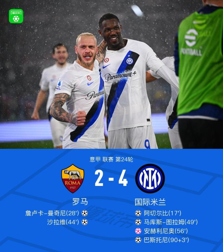 【剑南春|国米4-2客胜罗马取7连胜,图拉姆、巴斯托尼破门】