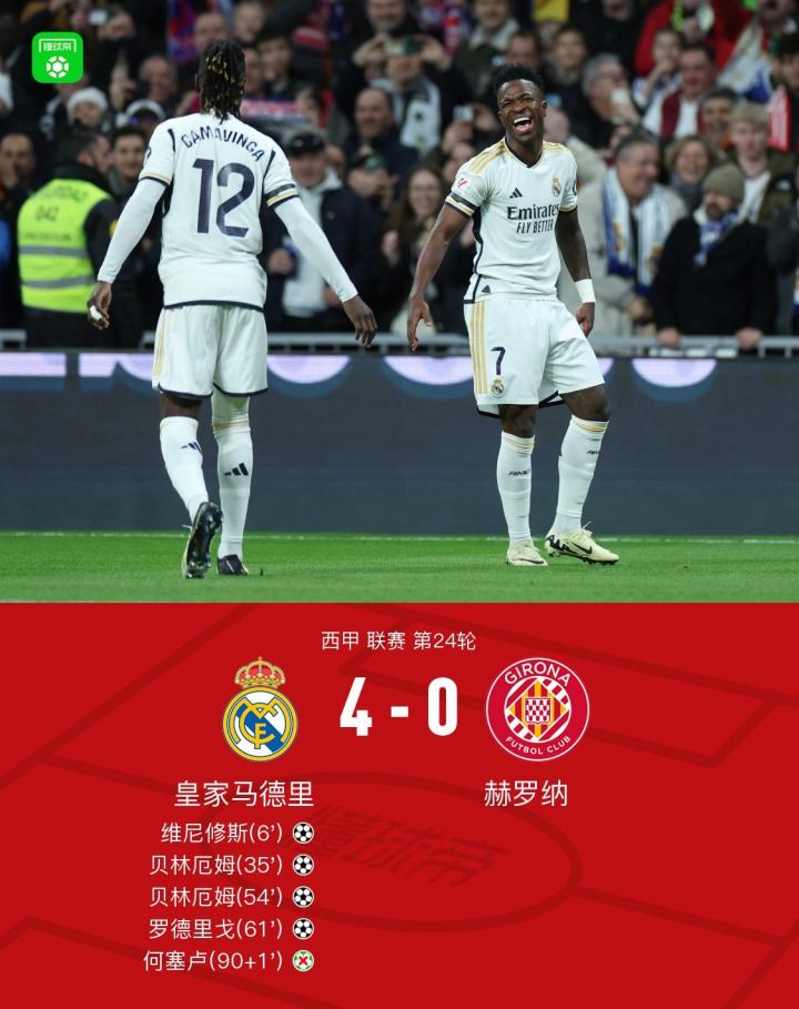 【剑南春|皇马4-0赫罗纳,维尼修斯2传1射,贝林厄姆双响】