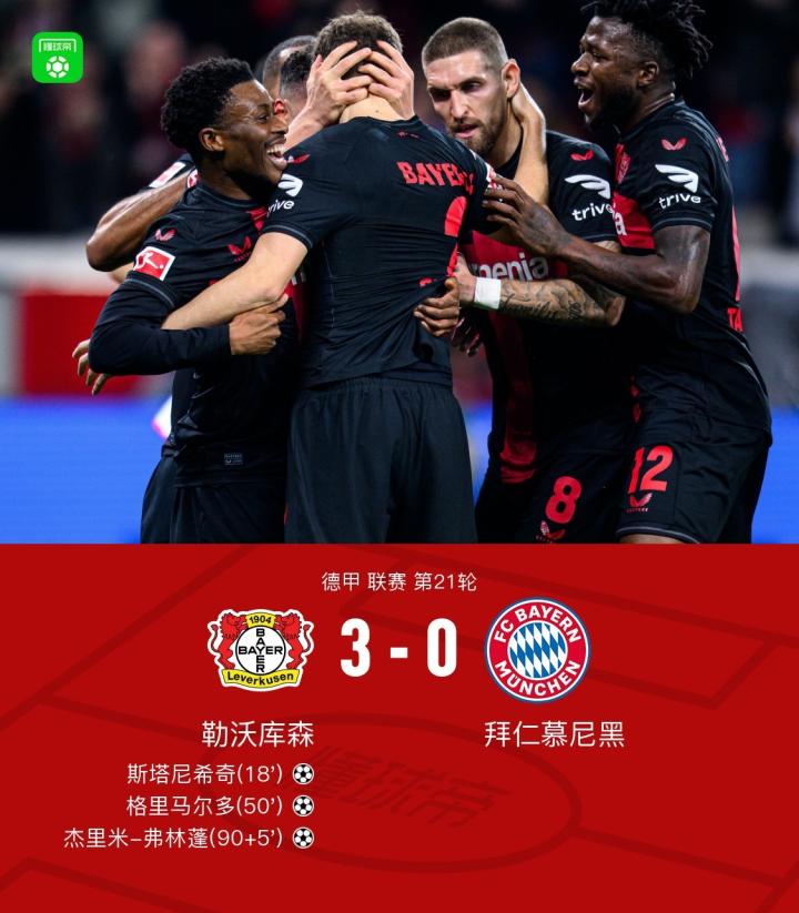 【剑南春|勒沃库森3-0完胜拜仁以5分领跑,拜仁全场仅1射正】