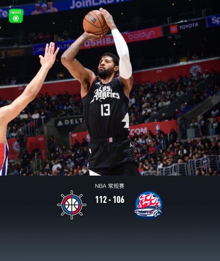 高歌猛进!NBA快船112-106活塞,乔治33+5+3,伦纳德24+4+5