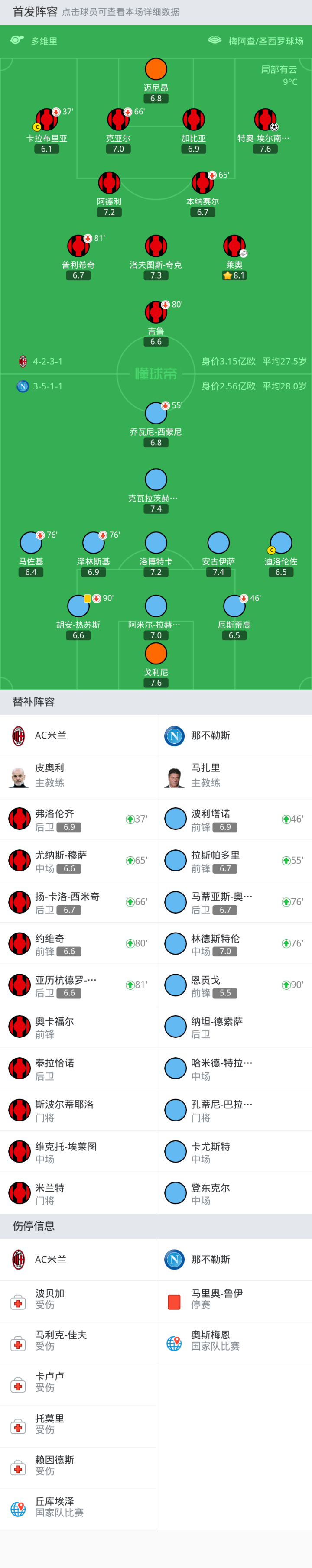 替换下场:90'5-胡安-热苏斯, 76'20-泽林斯基, 55'18-乔瓦尼-西蒙尼, 76'30-马佐基, 46'55-厄斯蒂高