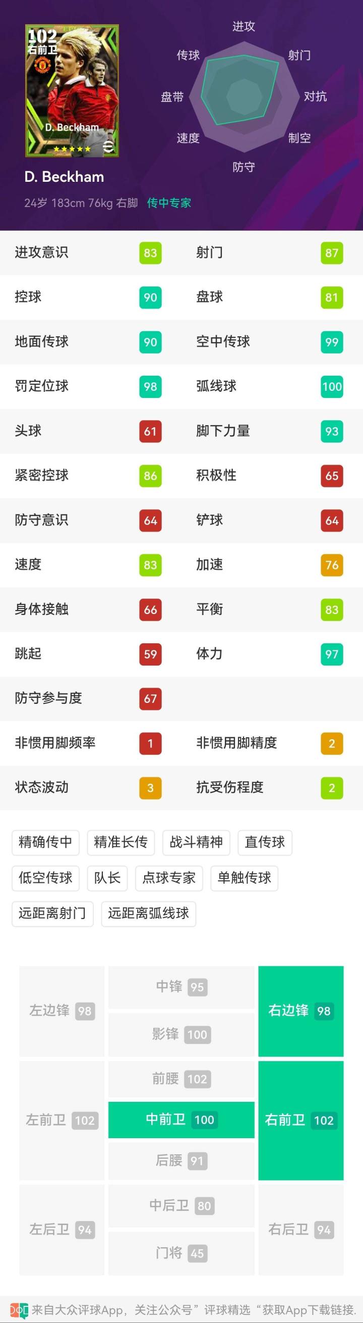 俊朗的外表,美丽的弧线,明星的妻子,自豪的荣誉,...实况足球小K @懂球帝2024-02-12 18:11俊朗的外表,美丽的弧线,明星的妻子,自豪的荣誉,青春的记忆,梦幻的传奇,无尽的伤病,世人的指摘,自我的救赎,上帝的眷顾。他是宠儿,也是弃儿 ,他被追逐,也被放逐 ,他在失重中重获尊重,更在尊重中获得更多的尊重 ,他将离开,也永远不会离开 ,他叫大卫 贝克汉姆 。他是一个牵动世界的人,他是一个动人的球员。 实况里的小贝也有着极高的人气,右路的传中无人可比,兄弟们最喜欢的小贝是哪张呢?展开更多