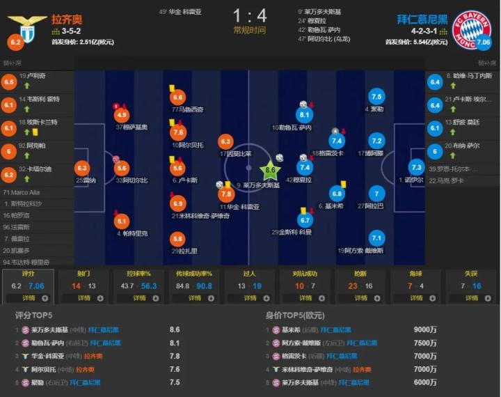 1.拉齐奥首发身价预计1.3亿左右远不及三年前的2.5亿,队内身价最高的扎卡尼也不过2500万且将因伤缺席,2000万身价的贡多齐则为首发最高;拜仁这边仅凯恩+穆希亚拉两人身价就已达到2.2亿,总身价预计也将有5亿左右和三年前几乎相同,单从身价上看两队的差距被进一步拉大...
