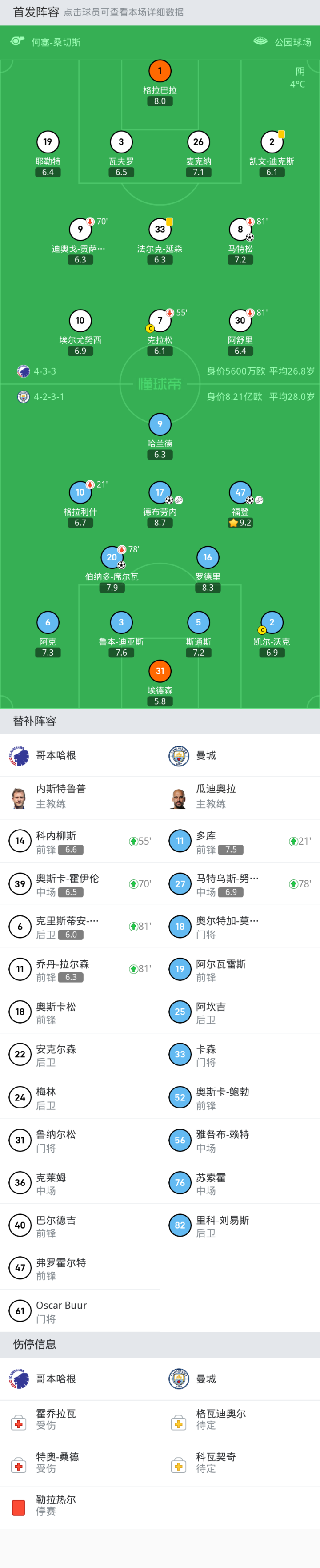 上场替补:81'6-克里斯蒂安-瑟伦森, 55'14-科内柳斯, 81'11-乔丹-拉尔森, 70'39-奥斯卡-霍伊伦