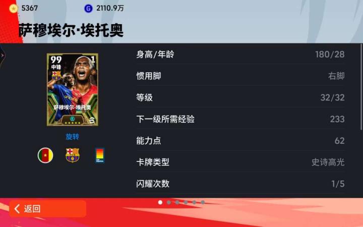 实况足球增能埃托奥强势上线!!埃托奥的速度令人叹...白人没你黑啊 @懂球帝2024-02-14 23:18实况足球增能埃托奥强势上线!!埃托奥的速度令人叹为观止。他的爆发力和冲刺能力都是顶级水平,让人无法想象他是如何在球场上如风一般的穿梭。他的瞬间加速让对手无法反应,他的冲刺速度更是让防守球员望而生畏。他的速度不仅仅体现在直线冲刺上,更是在变向和突破中展现出来。他的灵活性和敏捷性使他能够在狭小的空间内迅速转向,从而摆脱对手的防守。如果你也想要这么一张球员卡,这次活动不容错过展开更多