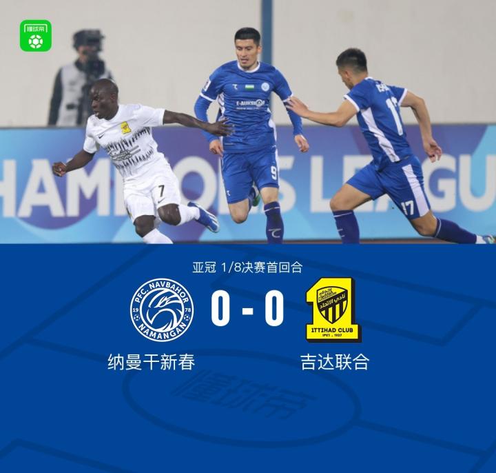 吉达联合客场0-0纳曼干新春,双方机会寥寥,哈默德射门中柱