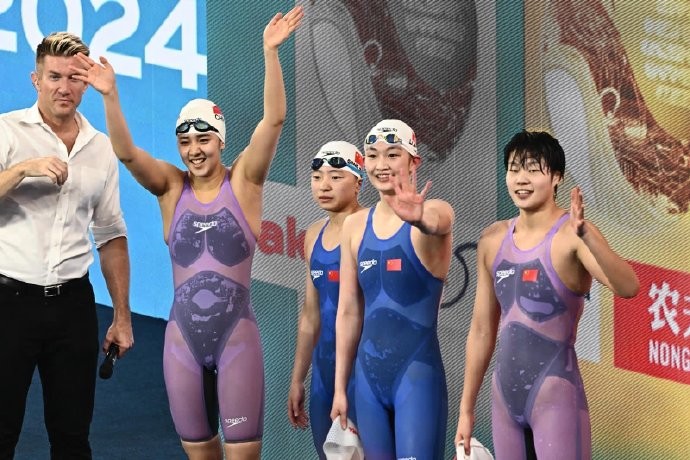 逆转夺金!中国队夺女子4x200自由泳接力世锦赛冠军OS_Shooter @懂球帝2024-02-16 08:25在北京时间2月16日凌晨进行的世界泳联游泳世锦赛中,由艾衍含、龚真琦、李冰洁和杨佩琪组成的中国队成功夺得女子4x200自由泳接力项目的冠军。在前两棒处于落后的中国队在第三棒李冰洁的奋起直追下,从第五超到了第一的位置,第四棒的杨佩琪扩大优势,中国队最终7分47秒26获得冠军,领先第二名3秒64的巨大优势英国队、澳大利亚队分别摘得银牌和铜牌。展开更多