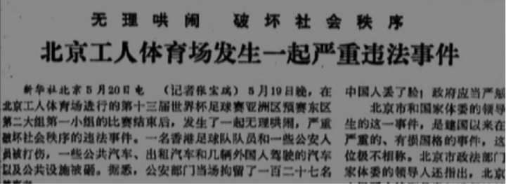 1985年5月19日,北京的天气由晴到雨,工体从热潮变混乱,8万名球迷兴奋、失望直到愤怒。中国队在北京主场狂轰28脚无果,1-2负于香港队,世预赛出局,举国震惊。