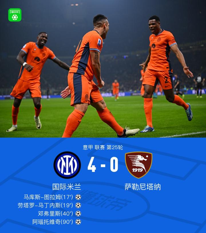 国米轻松战胜萨勒尼塔纳,或许意甲冠军已经在向他们招手了,而这场比赛也是劳塔罗的里程碑之夜