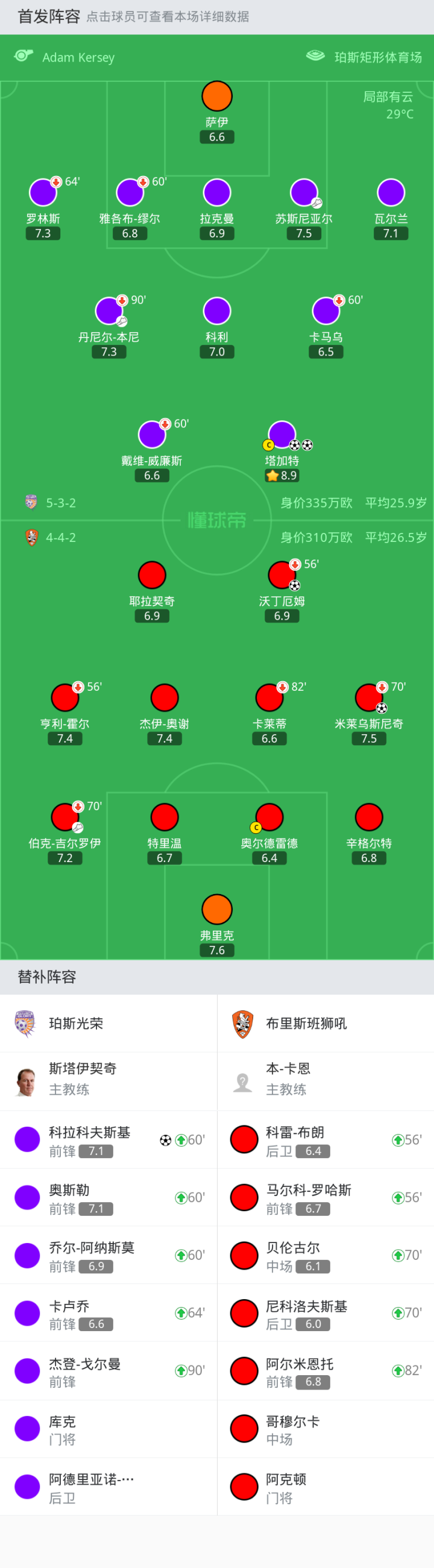 上场替补:56'20-马尔科-罗哈斯, 70'7-贝伦古尔, 56'3-科雷-布朗, 82'17-阿尔米恩托, 70'32-尼科洛夫斯基