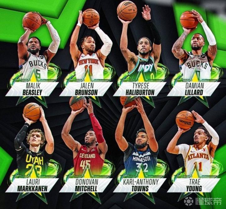 第一轮,率先登场的特雷杨拿到26分,第二个登场的米切尔21分,第三个哈利伯顿26分,第四个比斯利20分,第五个唐斯26分,第六个布伦森24分,第七个马尔卡宁25分,最后登场的利拉德也是26分。特雷杨、哈利伯顿、唐斯、利拉德四人进入加时赛!